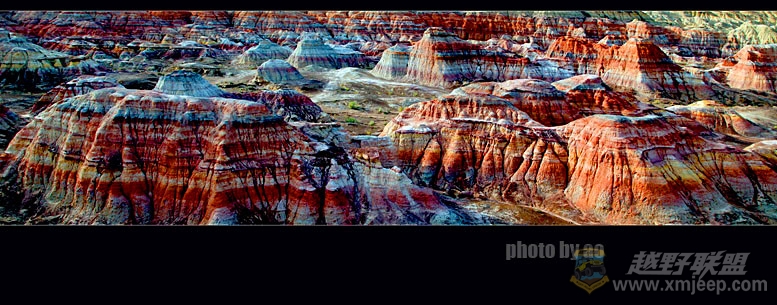 / \) p ]5 u- O A/ ~五彩城所说是香港人来开发的,不过只有几位当地的哈萨克牧民在经营着,景区条件很简陋也很自然,不过遗憾的是游人可以到处爬到处踩,越野车也往里冲,这样要不了几年,估计五彩城也会像交河故城那样“国破家亡”喽。