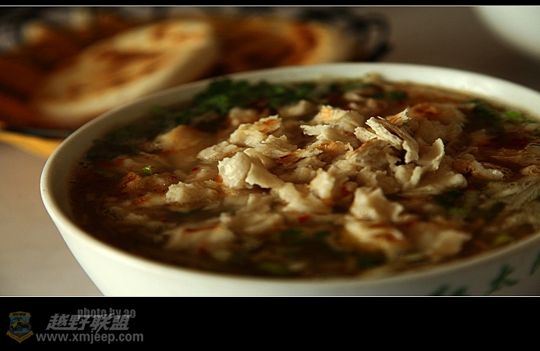 原以为大枣只有灵宝的好,没想到枣园的大枣那才是奇物,不知道各位吃过东阿阿胶枣没,那是加工出来的,枣园的大枣不用加工,直接就是阿胶枣,那个甜,那个密,没得说。只是价格比农副产品高出许多,尝了一个,过把瘾掉头走人。来到陕西,可不能拉掉小吃羊肉泡糢,阿梅是第一次来陕西,我教她羊肉泡糢的吃法,阿梅用指甲掐摸,掐了一阵,说指甲受不了了,然后便改了吃法,先把糢咬进嘴里,然后再灌羊汤像喂药一样把糢送进肚子里。