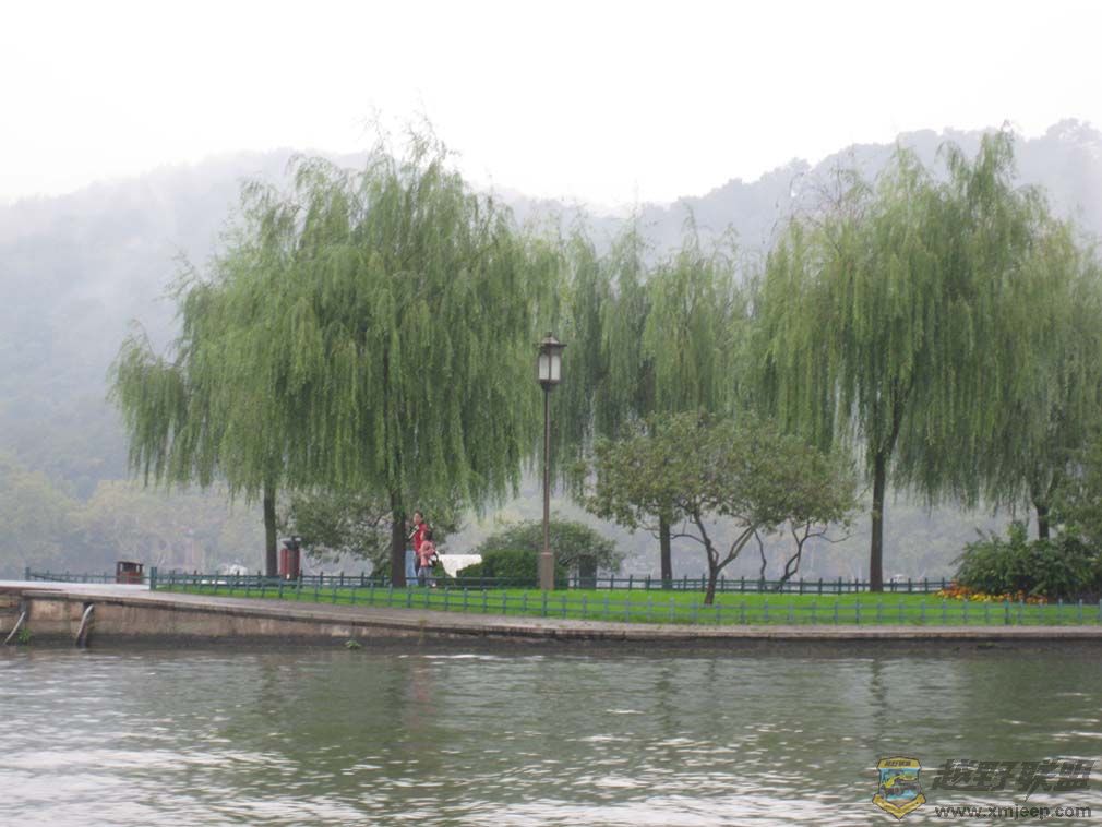 柳枝依依的冬雨长堤