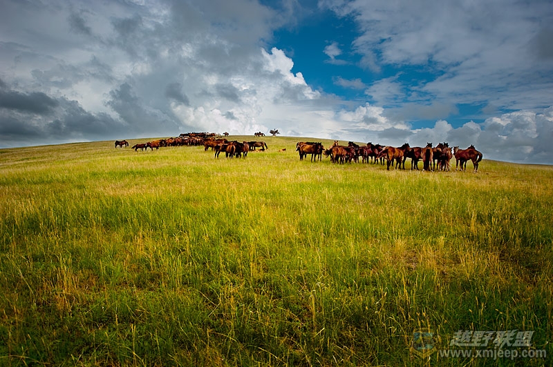 坐在凌志570越野车上,轻轻地依靠着淡泊的肩膀,将目光投向窗外这片移动的风景。纯净的蓝色天空,润湿的绿色原野,雨后新晴的内蒙古,以一张阳光的笑脸迎接着我的到来。出发前曾搜索过当地天气情况,预报说从13日起呼伦贝尔将结束阴雨天气,迎来一段阳光明媚的好时光。但愿,我能给我们的摄影小团队带来好运!