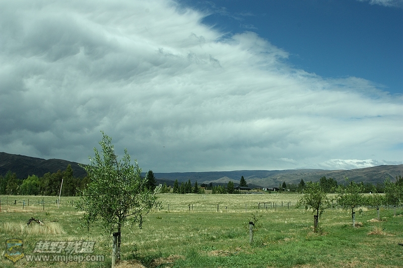边上的葡萄园。乌云散开了,露出蓝天