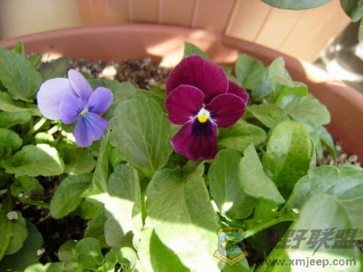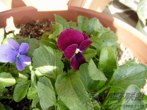 这盆角堇有蓝色
