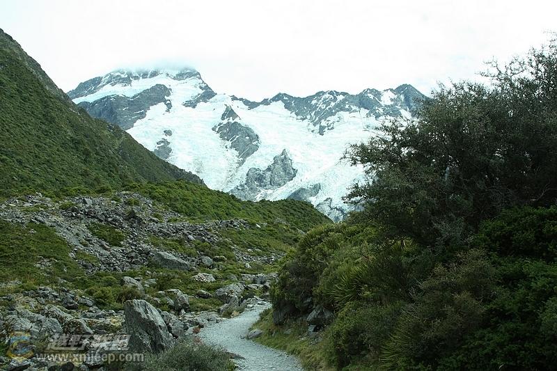 可以想象得到,冬日里巨大的冰川是如何年复一年刨蚀着两岸的山体,将我们与对岸上的库克山活生生地给阻挡了开去。