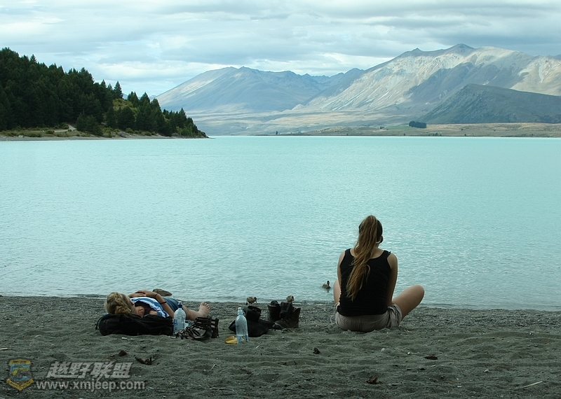 大家玩累了后,都坐在树荫下休息。这时候,我们看见有两家人带了几个孩子和一条狗过来玩。