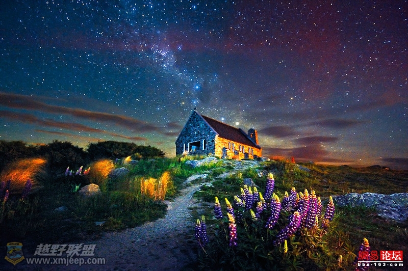 6 V7 _4 p& [. R5 Q, ?, L每颗星星都努力绽放着属于自己的光芒,彼此争奇斗艳,宽广而明亮的银河横亘于好牧羊人教堂上方。