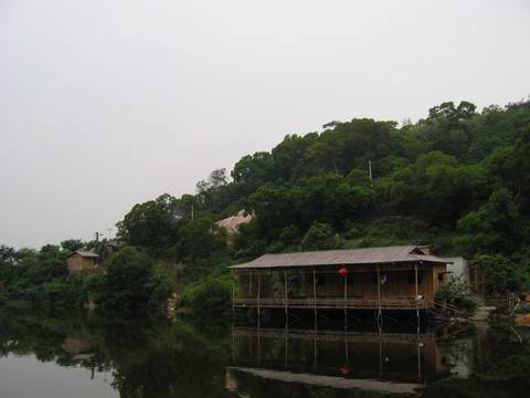 平静的水面,休闲的竹楼,美!!