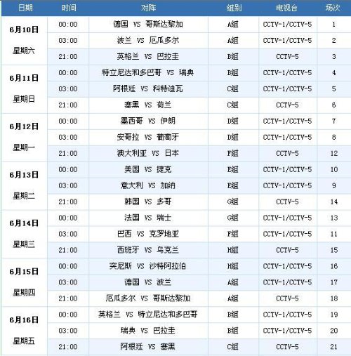 » [分享][注意]2006年德国世界杯电视转播表