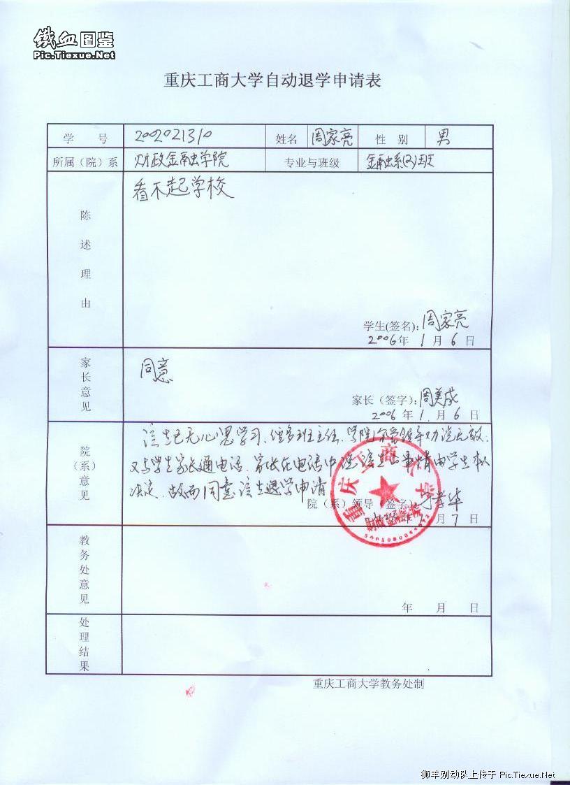 » [转帖]一位大学生的退学申请表
