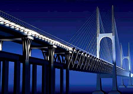 武汉第六座长江大桥。正桥全长4657米。公路桥为双向6车道,设计时速80公里/小时,主跨504米,主塔高189米,是世界上跨度最大的公铁两用斜拉桥,其中铁路桥可并排跑四列火车(两条客运线和两条货运线)。该桥因其独特的设计和特有的施工难度,被桥梁界誉为跨江桥的里程碑。