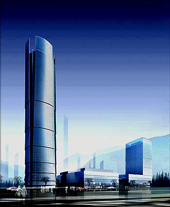 设计遵循优雅简洁的原则。外观品位高雅,超高层主楼采用闪亮的玻璃立面,顶端是四扇独立的玻璃墙。
