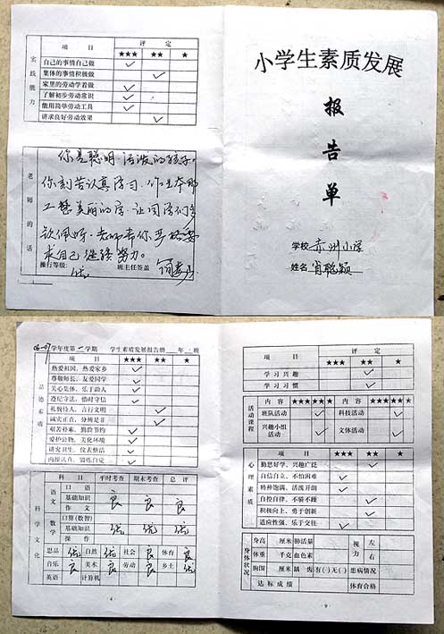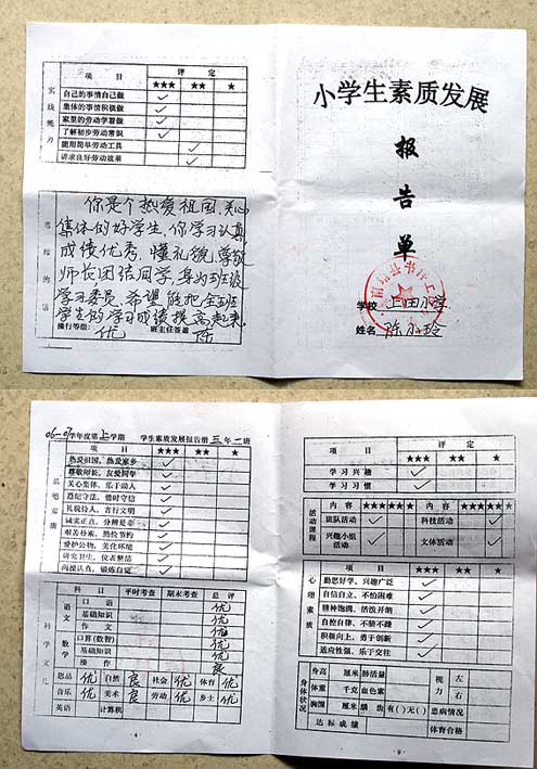 刚收到联盟资助的孩子寄来的成绩单