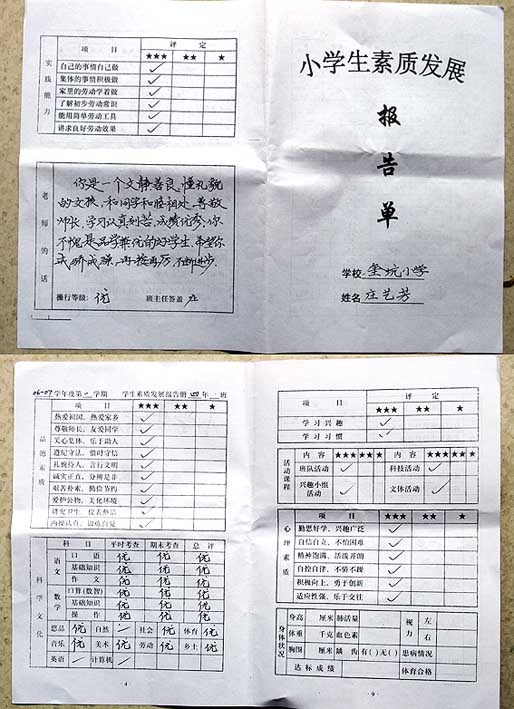 » 刚收到联盟资助的孩子寄来的成绩单
