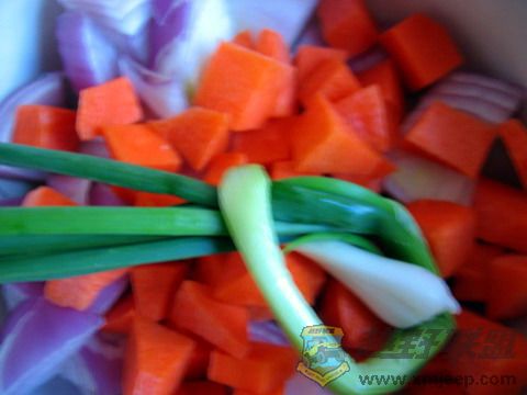 起油锅,爆洋葱,入味,放入胡萝卜煸炒,