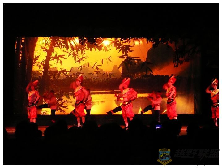 刘三姐景观园,这是景观园里的节目,很多人坐在一个大礼堂里..那个热啊