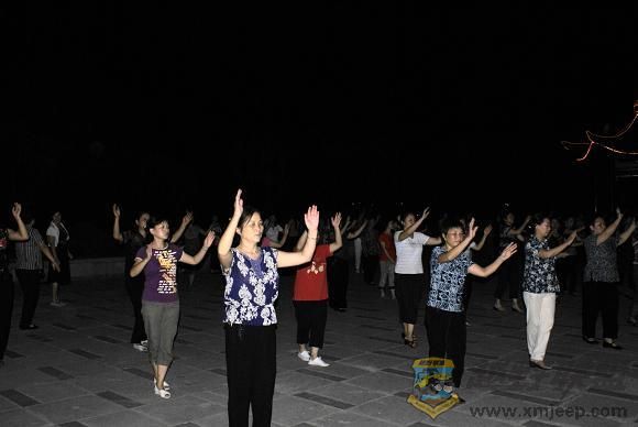 一群老年人夜间跳起了迪斯科`~~~~