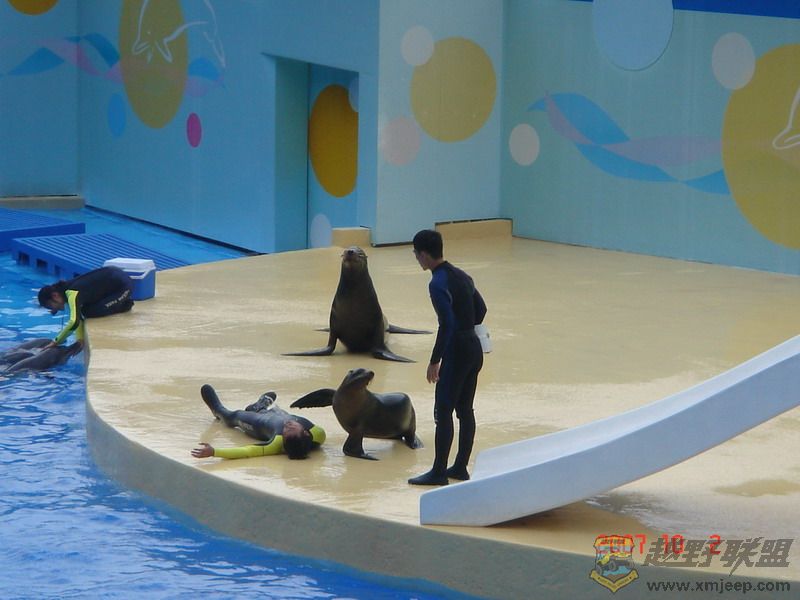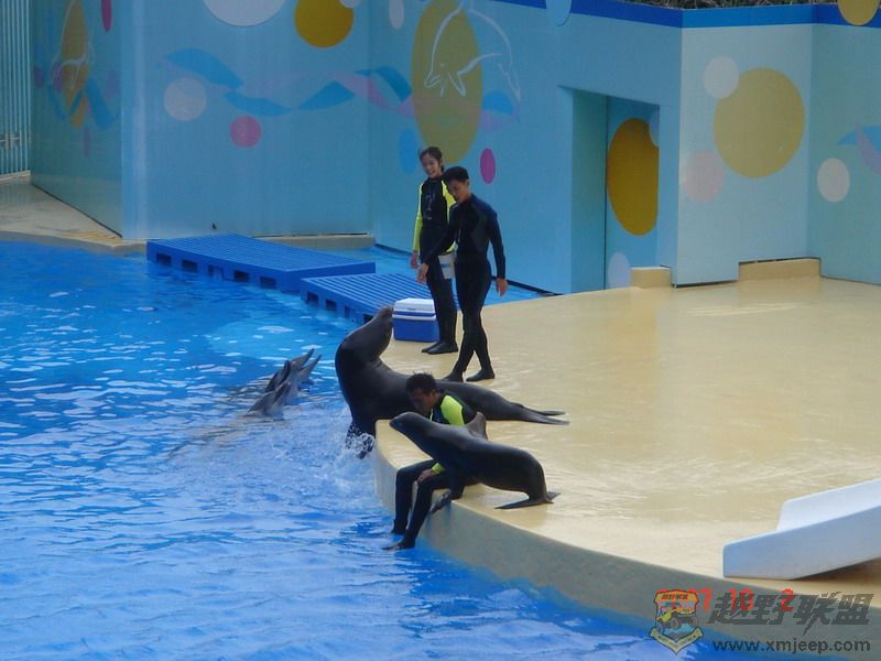 以前有一只小鲸鱼很漂亮和聪明但可惜死了:funk: 。。。现在是三只海豚和两只海狮在表演。。。,还有回答鹅M不好意思:loveliness: 我这次用的相机只是一台SONY的卡片机拍的。。。效果不是很好。。。:loveliness: