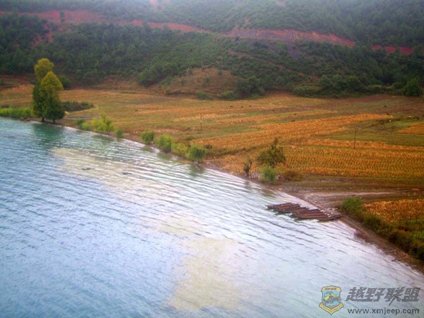 * ~! O: c% I7 t( s4 N6 k ?3 W- E送走新疆MM,没了后顾之忧,我背好背包,披上雨衣,戴好帽子,套上手套,撑起雨伞,不再担心风狂雨暴了。九点五十一分,风雨大作,我哼着高明峻的歌曲《我独自走在风雨中》,再次出发,独自一人徒步泸沽湖去。云南境内的环湖路都是弹石路,被雨水淋得滑不溜秋,数不清我的鞋子在石头上发生了多少次漂移,更惨的是,左脚的鞋尖居然开了口,雨水和泥水慢慢从开口处渗入鞋子,袜子也湿了。但正是不经历风雨怎么见彩虹,路过的第一个村子尼赛村就给了我美丽的回报。从高处下望,尼赛村躺在一弯柔美的圆弧形水岸边,湖水完全不同于里格的暗黑色,而是醇厚的深蓝色,近岸处则变成黄绿色,红褐色的田野上铺满金**的秸杆,岸边挺立着几株黄灿灿的杨树,多姿多彩的泸沽湖,美丽的家园!0 M% y+ F6 ?7 T% G* ^