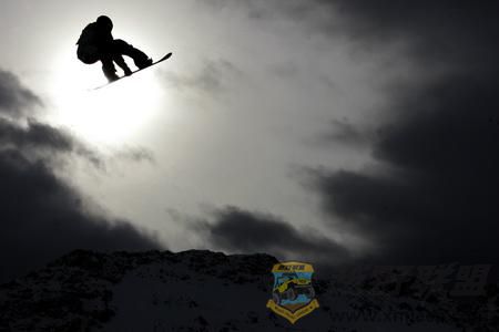 1月18日,国际雪联单板滑雪世界杯赛资格赛,一名参赛者奋力一跳。跃上清晨的太阳,与晨光舞蹈。