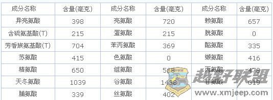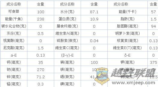 生蚝的营养成分列表