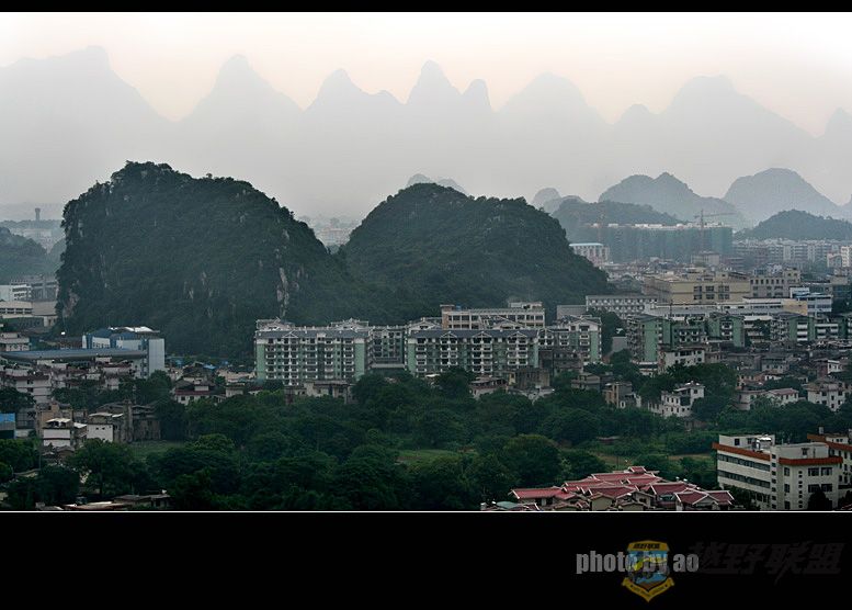 桂林一座座小山包都各具特色,以前游过象鼻山、七星岩,可惜没留什么照片,这次从酒店早起出来,爬了旁边不远处的叠彩山,登到山顶,桂林山水秀满视觉,只可惜每次到桂林的日子总有些不对,看不到日出,不过桂林被烟尘和水雾包裹着,却总让我感受桂林山朦胧水亦朦胧的意境。