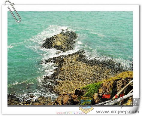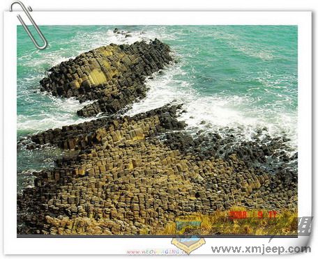牛头山古火山口位于东海南疆,是目前世界上少数完整的椭圆形海底古火山口,潮涨即隐,潮落即现。地质专家经过反复的考查与论证,认为这个古火山口至少发生过3次大爆发,最后一次在距今2千2百万年前的第三纪中期。火山口成圆锥状,直径数十米,中心位置有凹槽深约3米。从古火山口喷薄落地的岩浆,久经海浪侵蚀,已变成一堆堆千姿百态、犬牙交错的黑色礁石。而海滩下紧密排列着的玄武岩石柱最令人惊叹,高约六、七十厘米,向着海中倾斜,鳞次栉比,千军万马列阵,似秦兵马俑,拱卫着万里海疆,面积达10万多亩,人们称之为“海底兵马俑”。7 E* y8 ^- f( \