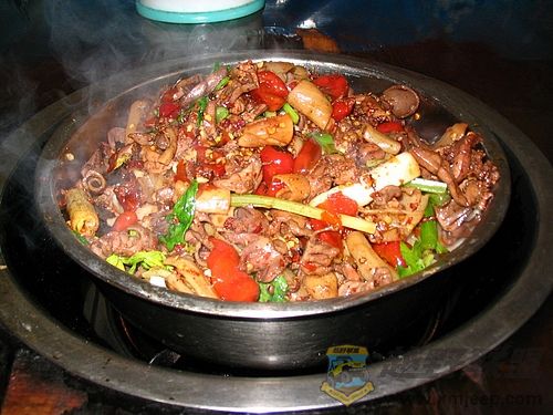 / r5 e# t- g- m6 \鸡杂与毛血旺是特色