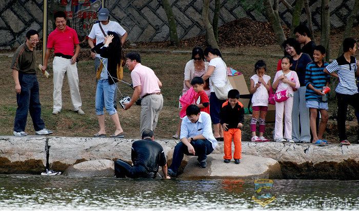 5 Z' C) c& ^% Z老大登岸后还没站稳,第一句话就说:“今天的水温很适合航行”(晕啊)。。。下水前,熊老大抚摸了游艇并郑重将游艇交给海狮兄。然后庄严宣布:“海狮”号启航!”。。。这真是一场神圣的**航,开幕仪式虽然简单却不失隆重和创意。熊老大,俺们为您喝彩!哈。。。