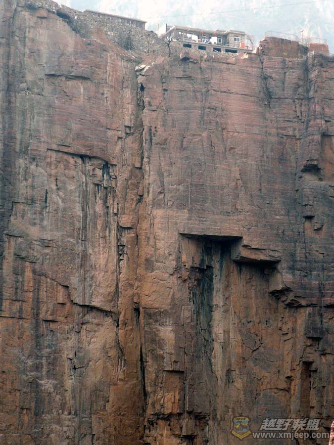 6 |5 r+ \& C B- t4 W厦门越野联盟搞定住宿,就在村里闲逛。郭亮村位于太行山山峰上的一块台地上,四周环绕着更高大的山峰。郭亮村的民居都是就地取材,全都是用当地的石头建成,外观是典型的北方民居式样,屋顶有天台,天台四周用砖砌了一圈镂空的围栏。沿着崖顶公路散步,旁边就是悬崖,探头往峡谷下看,太行山的惊险奇绝让俺双腿发软。只有身临这铜墙铁壁般的太行山,才能更好地理解当年抗日烽火为何能在太行山上熊熊燃烧。山风掠过,山谷间似乎仍回荡着中华民族壮怀激烈的战歌: