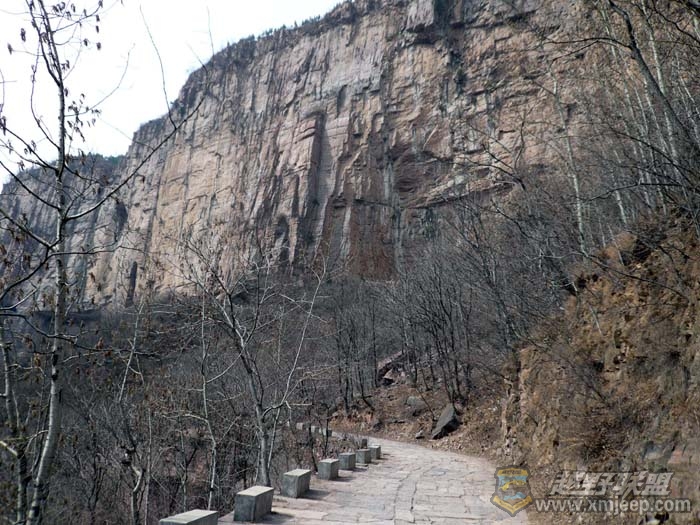 置身于太行山大峡谷中,俺的四周就是巍峨耸立的太行绝壁,极有气势,极具视觉冲击力。公路在山壁上蛇形穿梭,我偶尔也舍弃大路抄抄近道。踏步初春太行山中石板小道,四下无人,唯有鸟儿在桃花丛中唱歌,让俺惬意得很。绕回公路上正走得欢时,一辆上山的私家车停在我身边,开价十块钱搭我上山。免费的俺都不坐,何况还得花十块钱?还有一辆微型车,只载两个人,在一拐弯上坡处,发动机狂吼,车子乱抖,黑烟乱冒,却居然差点爬不上来,让俺很纠结,俺要不要学雷锋帮着推车呢?