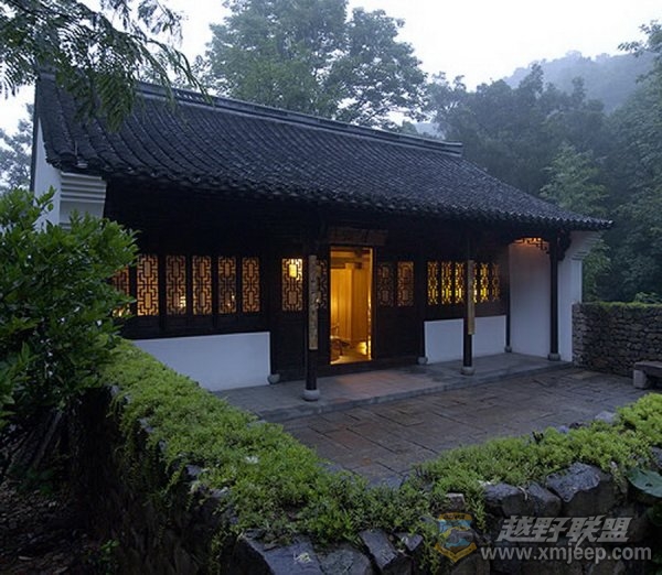 4 B3 b7 G# V! L1.jeeplive.com从法云路往永福寺方向,沿着半山坡向深处缓缓行进,便看到右手一个不大的安缦法云酒店的木牌,转弯进去就是毗邻灵隐寺与永福寺的法云村落。