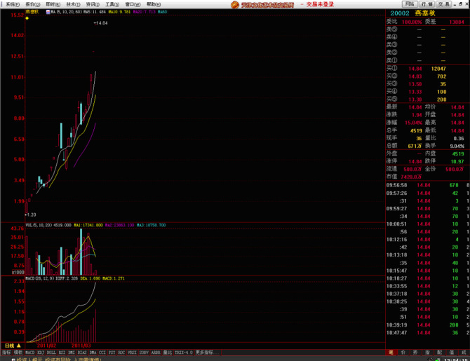 上市第一天股价1元,到3月15日,股价14.84元,暴涨14倍。