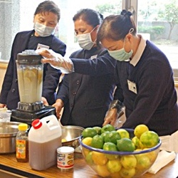 每天晚上,在家中燒好開水,隔天出門前再裝入環保杯中,攜帶出門飲用,若一時無法立即改變飲用習慣,在炎炎夏日到來之際,亦可動手自製健康飲品。夏天是檸檬結實纍纍的季節,不僅價格便宜還富含維他命C,最適合製作蜂蜜檸檬汁。(攝影者:彭薇勻)
