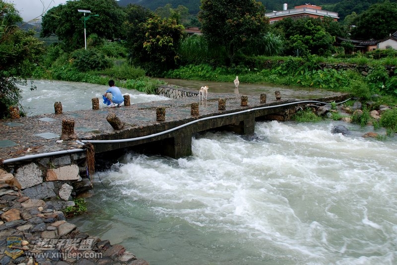 两条溪流冲过桥墩后自然融合在一起,堪称一绝啊,或许也只有大雨后才有的景象。。。