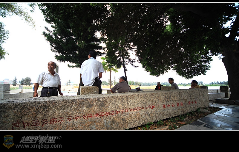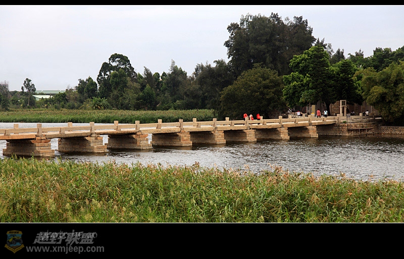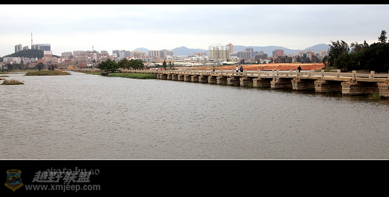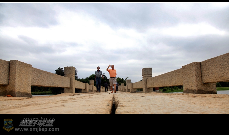 : R9 q' v+ Z7 ^+ Y厦门越野联盟这新桥与我们的心理距离实在是遥远,便驻车在公路两边到处打探,这一带打工仔超多,问了不少人均答不知,正准备放弃之际,恰一本地村民热情指路,我们从公路旁抄一条土路来到工地,没想到仅百米的距离,见一长桥横卧水波,左右均不见头尾,原来这工地正是万安桥中部湖心亭修缮的地方,真是纵车寻它千百度,得来全不费功夫。