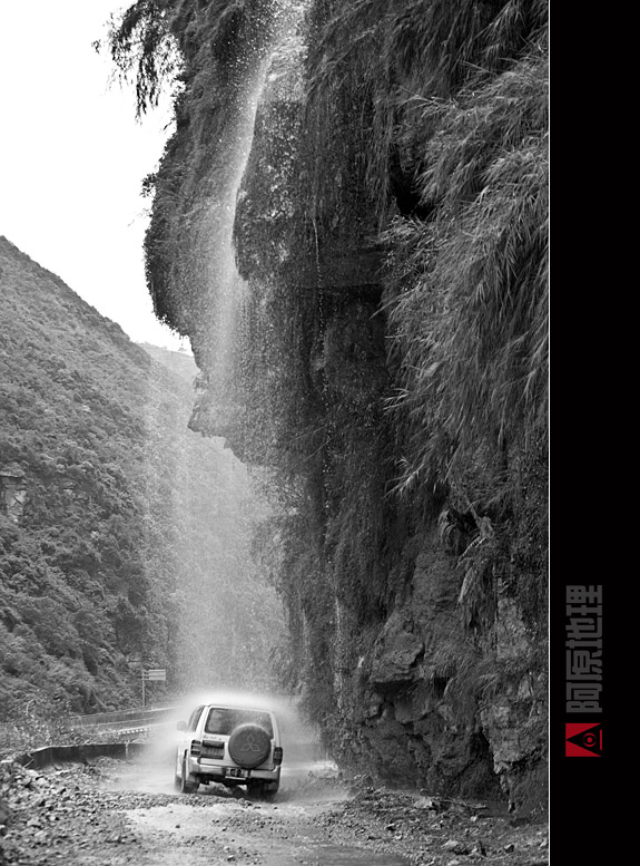 此行专门做了个数据记录,全程柏油的公路到了瀑布公路段为抗水击而改用砖石铺就,在这段全长1500米砖石公路的悬崖上,挂着大大小小24条瀑布,其中至少有5条瀑布可以直接开到水帘下洗车。
